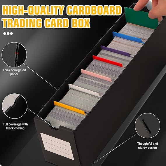 600枚以上のシングルスリーブカード用のカードボックス9枚、8色のカード仕切り48枚、ラベルシート2枚、両面テープ2枚。 この実用的な組み合わせにより、カードを効果的に整理できま