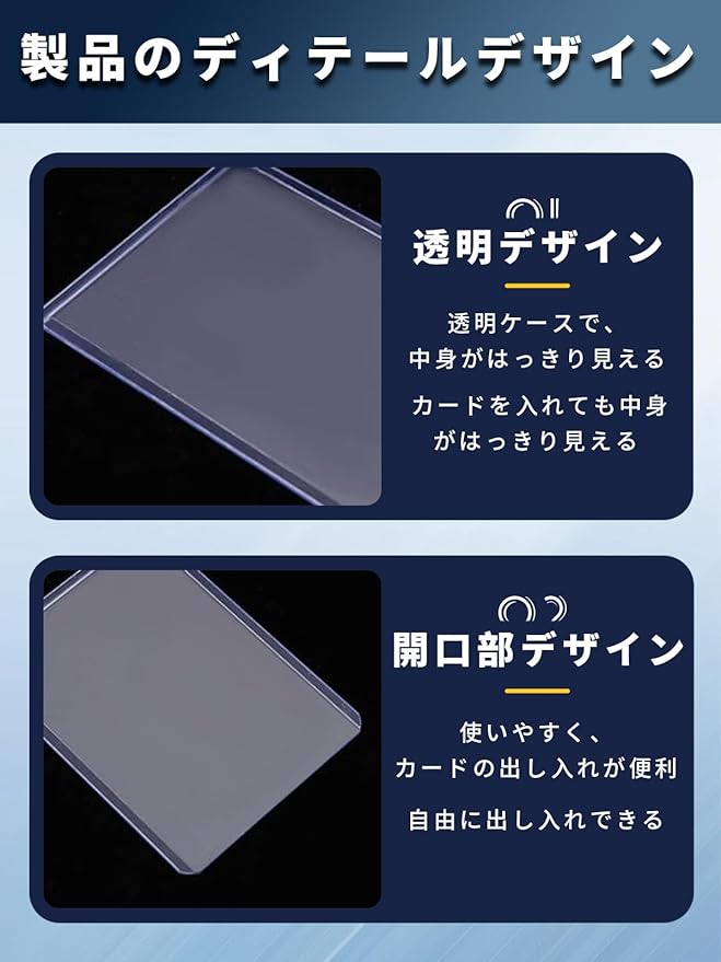 【硬質カード素材、高透明度】硬質ケースは強靭性に富み、手触りが繊細でしなやかで、割れも曲がらないし、反りもしない。高透明度で、カードを入れると中がはっきり見えます。