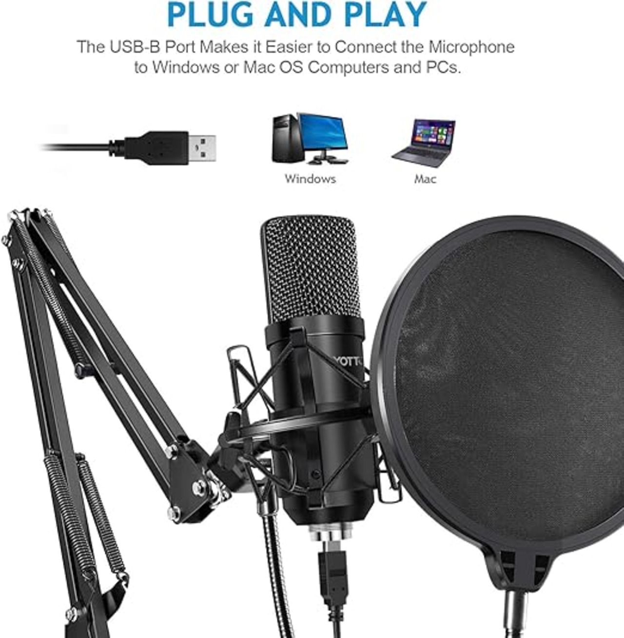 YOTTO USBマイク コンデンサーマイク PC マイクセット マイクスタンド ポップガード アームスタンド付き 録音 生放送 YOUTUBE ゲーム実況 a