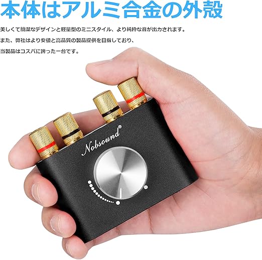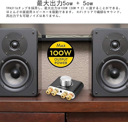 Nousoundの特製チップを採用され、最大パワーは100W(50*50W)になり、 ほとんどの家庭用スピーカーを簡単に駆動ですます。HIFIのクリアで繊細のサウンドで、大音