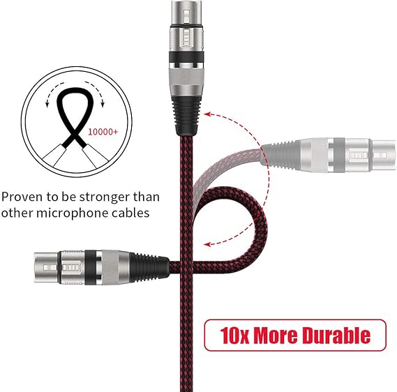 【長持ち PET あみを編む】私たちのバランスマイクケーブルは銅で編んでいます。雑音を予防する効果があります。三重シールドはEMI/RFIに抵抗できます。混合PETネットはケーブルに最大の引張力を提供できます。XLR TSケーブル は10000回以上曲げられます。とても柔らかい