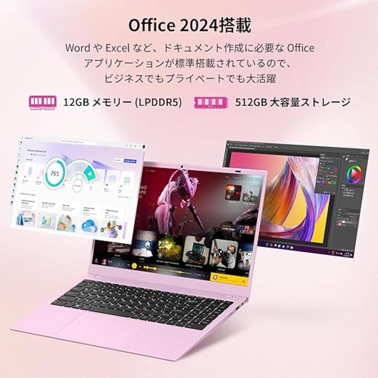 【最新Intel-N150&純正桜色ノートパソコン 】:CPU:Intel Twin lake-N150 4C/4T 最大周波数3.6GHz)搭載、Windows11 pro ラップトップは、高速応答を実現します。インターネットやWord・Excelなどのofficeマルチタスクがより高速に処理できてスムーズな操作を実現します!純正桜色のノート PC、春の気配をいつでも持ち歩けます。彼女は「桜の季節をいつも持ってる」と喜び、彼は「意外と落ち着いた色だ」と感動。男女が共感できるカラーデザインです。