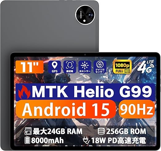 【G99 タブレット Android15】アビドパッド A90S タブレット simフリー Helio G99 Tablet 11インチ RAM24GB+ROM256GB Android Tablet 1920x1200解像度 Tablet GPS搭載 ジャイロセンサ/光センサ/顔認識 WiFi/BT5.2/OTG 8000mAh 3.5 mmイヤホン simフリーTablet G99 a