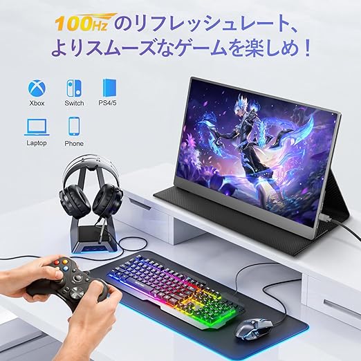 モバイルモニター 18.5インチ COOLHOOD モバイルディスプレイ ゲーミングモニター 100%sRGB 100Hz 1920x1080FHD HDRモード・FreeSync・VESA対応 ブルーライト低減 非光沢 IPS液晶パネル デュアルスピーカー内蔵 USBType-C mini HDMI PS4/PS5/Switch/Xbox/PC/Macなど対応 a