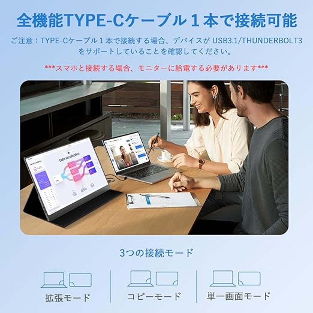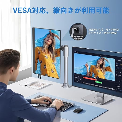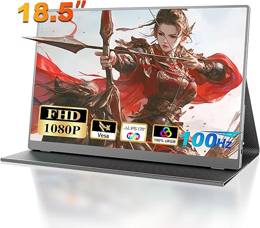 ★【18.5“1080P大画面&100Hz高速応答】18.5“大画面は効率的に仕事を処理し、複数のタスクを同時に処理できます。モバイルモニターが小さすぎのお悩みを解消!モバイルモニターはFHD(1920*1080)の十分な解像度を備えており、sRGB100%色域と400nit対応し、より豊かな色味と滑らかな色移りが可能になり、微細なディテールを鮮明に見ることができます。100Hzフレッシュレートは映像のちらつきやカクつきを制御できます。驚くほど滑らかなゲーミングビジュアル、ゲームの遅れなくスムー