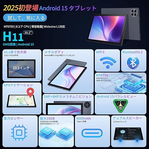 【2025新登場 Android15 タブレット 10インチ 】 16GB+128GB+1TB拡張 8コア CPU MT6750 1280*800 IPS 8000mAh 5MP/8MPカメラ wi-fi6 BT5.2 Type-C充電 高性能 OTG 画面分割 重力センシング 無線投影 GPS+GMS認証 キーボード+ワイヤレスマウス+保護ケース+タッチペン+スタンド付 日本語説明書付 a