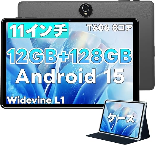 COLORROOM C5型 アンドロイド 15 タブレット 11インチ 12GB+128GB+1TB拡張 8コアCPU T606 tablet WidevineL1 対応 8000mAh/18W/TYPE-C充電/5GWiFi+BT5.0/顔認識/無線投影/画面分割/5MP/8MPカメラ 児童守護 日本語説明書 ケース付き (ブラック) a