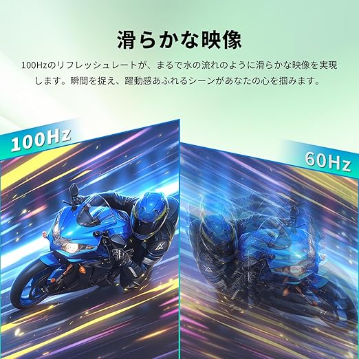 【驚異の100Hzリフレッシュレート】ゲームや動画も滑らかに再生。素早い動きも逃さず、快適な視聴体験を提供します。高速な応答性が求められるシーンでもストレスフリー。