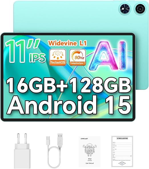 【2025新登場 タブレットAndroid 15】TECLAST P50 ai アンドロイド15 タブレット11インチ、AI機能+90Hzの高リフレッシュレート、7000mAh+フル機能タイプC、8コア CPU Widevine L1 対応、16GB+128GB+1TB拡張、WiFi 6+BT5.4+GMS、大画面 tablet a