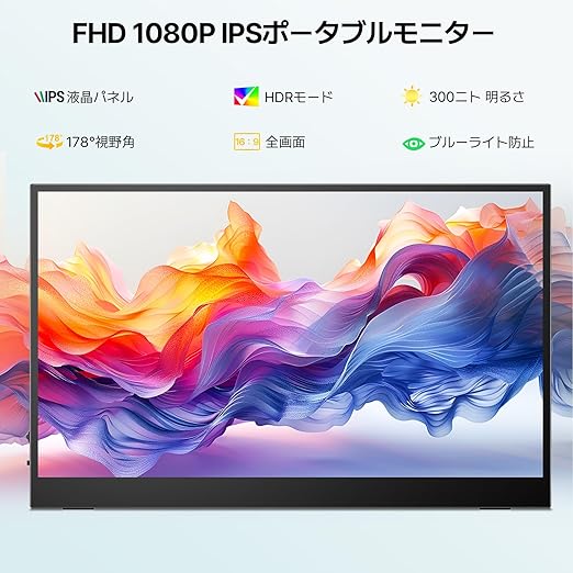 【15.6" FHD 1080P・マルチタッチ】 臨場感がある15.6インチ大画面を搭載するタブレットモニターは、画面解像度はフル HD(1920×1080)で、在宅勤務やゲーム、動画視聴に最適!178°視野角により上下左右からportable monitorの内容が得られる自然な色合いを表示できるIPS液晶パネルを採用、より広い範囲で見ても鮮やかな映像をみることが可能。マルチタッチ機能により多いジェスチャーで複雑なスクリーンに簡単にコントロールできると、ワーク効率を大幅に向上してマウスとキーボ