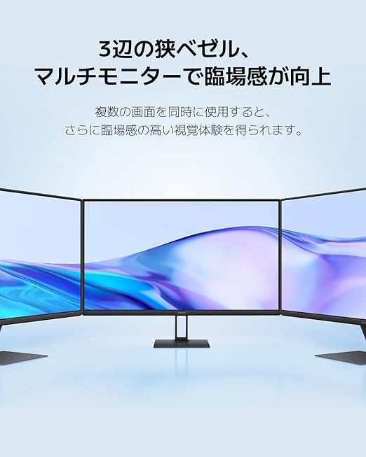 【マルチモニターで臨場感が向上】3辺に独自の狭ベゼルデザインを採用しているため、視野角が大幅に改善し、いっそう臨場感に