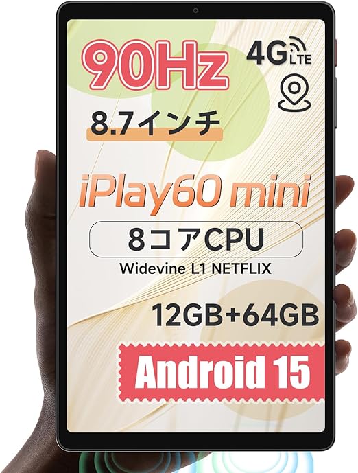 ALLDOCUBE iPlay 60 mini 8.7インチタブレット 90Hz高リフレッシュレート Android 15 デュアルスピーカー Widevine L1 8コアCPU T606 12GB+64GB+512GB拡張 Incell IPSディスプレイ 400ニット輝度 4G LTE デュアルSIM GPS OTG 3.5mmイヤホンジャック a