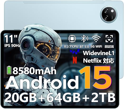 【タブレット 11インチ Wi-Fiモデル】DOOGEE A9+ Android 15 タブレット、20GB+64GB+2TB拡張、8コア CPU T7200、1280*800 解像度 IPS画面、8580mAh+Widevine L1対応+Netflix対応+GMS認証+Type-C充電+OTG+2.4G/5G WiFi+BT5.0+無線投影+顔認証+画面分割 日本語説明書付属 フルメタルボディ c
