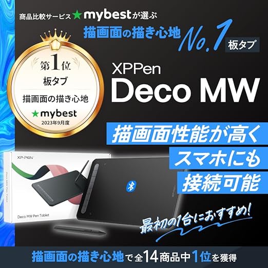XPPen ペンタブ Bluetooth ワイヤレス接続 8x5インチ X3ペン 傾き検知 ペンタブレット 板タブ スマホ対応 イラスト テレワーク お絵描ソフト付 iPhoneのibisPaint Android Windows Mac Chromebookに対応 Deco MW ブラック a