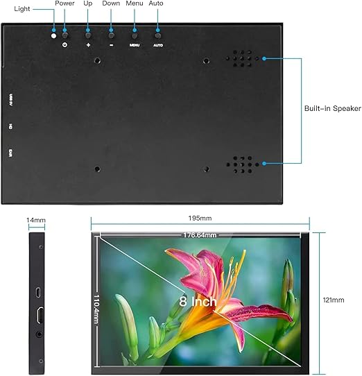 ELECROW 8インチ モバイルモニター 非タッチ液晶ディスプレイ 1280×800解像度 USB給電 HDMI対応 Raspberry Pi・ノートPC・Jetson Nano・ゲーム機対応 a