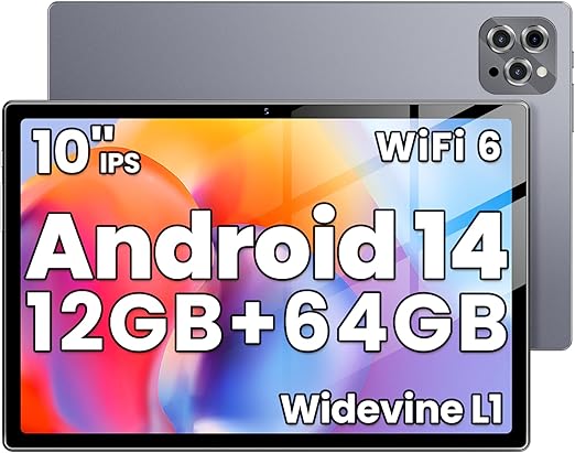 【タブレット 10インチ wi-fiモデル】12GB+64GB+1TB TF拡張、8コアCPU WidevineL1+GMS認証+Type-C充電+6000mAh、Android タブレット 1280*800 IPS画面 、WiFi6+BT5.0+OTG+画面分割+無線投影 日本語説明書付属 a