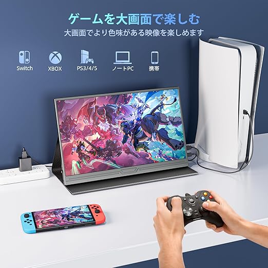 モバイルモニター 15.6インチ ディスプレイ ポータブルモニター ゲームモニター1080P ゲーミングモニター スイッチ用 1920x1080 FHD モニター 持ち運び IPSパネル 薄型 軽量 スピーカー内蔵 標準HD/USB-A/Type-C/mini HDMI端子 ブラック a