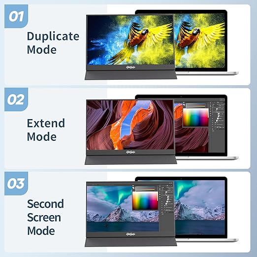 フル HD ポータブル モニター - 解像度 1920*1080 の 15.6 インチ ポータブル ラップトップ モニター、高度な IPS 光沢スクリーンは 178° の全視野角をサポートし、正確で明るい色をレンダリングし、本物のような色と驚くべきディテールでビデオやゲームに引き込みます。ブルーライト放射によるダメージを効果的に軽減し、ちらつきがなく、目をケアし、長時間の視聴が楽になります。在宅勤務用のセカンドモニターです。