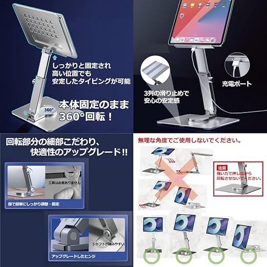 DAIAD タブレットスタンド モニタースタンド iPadPro iPadAir iPadmini iPad専用スタンド 360度回転 折りたたみ 無段階調整 放熱 安定 高さ調節 アルミ合金 グレー a