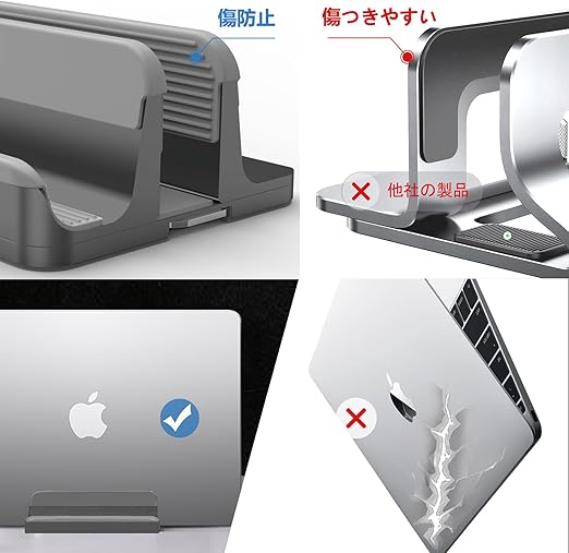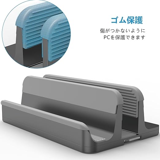【双スロット設計】: 2合1でデバイスの配置が容易!ノートパソコンと携帯電話を同時に垂直に置くことができます。