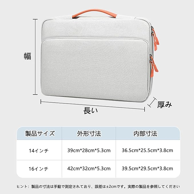 【仕様】14寸:外部寸法:39cm×28cm×5.3cm、内部寸法:36.5cm×25.5cm×3.8cm。 16寸:外部寸法:42cm×32cm×5.3cm、内部寸法:39.5cm×29.5cm×3.8cm。