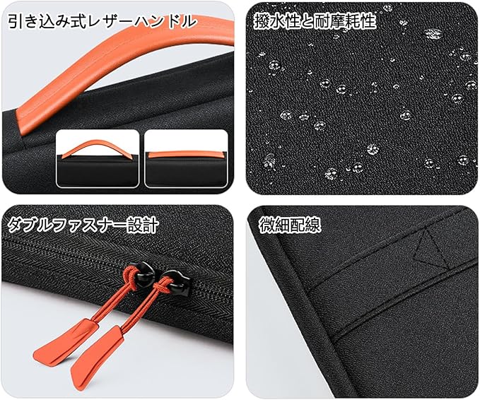 ノート パソコン ケース 14インチ/16インチ対応 PC用 手提げカバン 耐衝撃 エアクッション 防震保護 撥水加工 収納ポケット ビジネス 通勤 旅行 通学 (ブラック, 14インチ) a