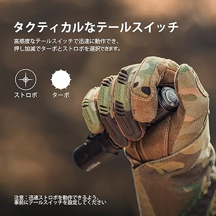 [2300ルーメン高輝度/300メートル射程] Warrior 3Sは高性能なLEDを搭載し、2300ルーメンまでの高輝度を備え、300メートルのホワイトビームを出力します。 高視認性の光束は防災、作業、旅行、捜索などを対応できます
