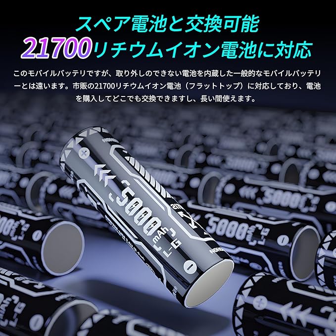 【多機能電池式モバイルバッテリー】充電池への充電、モバイルバッテリー機能、電池残量計、超コンパクトの3in1電池式モバイルバッテリー登場!スライド式バッテリーリリースボタンにより、わずか3秒でワンタッチで簡単にバッテリーを交換できます。急いで外出しているのに、充電器が充電されていないという状況から解放!日常的に使用している21700リチウムイオン電池(フラットトップ)を充電できます。生活に様々なデバイスに対応可能!
