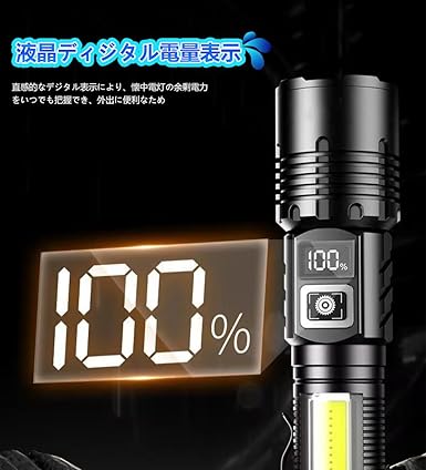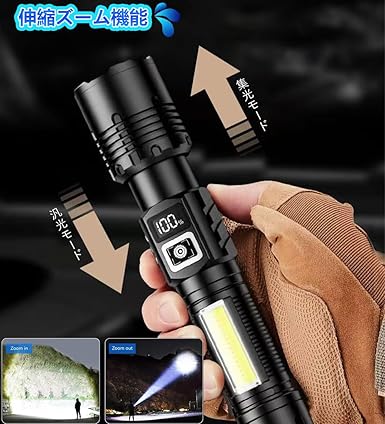 懐中電灯 led 強力 軍用 最強 【2025新型2-in-1多機能COB作業灯 】マグネット付き キャンプ ランタンライト 超高輝度 明るい ハンディライト 5モード 白&赤色灯 ディジタル電気量 ズーム式 ペンライト Type-C 充電式 フラッシュライト 18650大容量 電池式 長時間 防水 防災 ハンドライト 小型 手持ち 作業用 アルミ合金 登山/夜釣り/地震(2個パック) a
