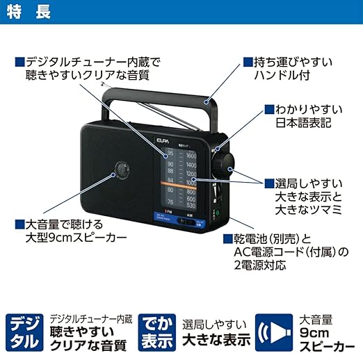 エルパ (ELPA) AM/FMポータブルラジオ 防災 携帯ラジオ デジタル ER-H100 a