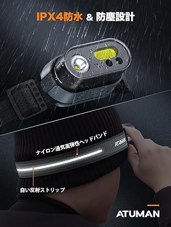 【手振りセンサー&多機能搭載】ATUMANヘッドライトは手振りセンサー機能が付きます。手