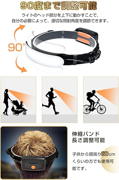 T・O・T ヘッドライト 充電式 usb LED ヘッドランプ 超高輝度 ハンズフリー 作業用 ワイド アウトドア キャンプ 登山 釣り 防災 ランニング 最強 ルーメン 5000mAhバッテリー 防水 散歩 作業灯 ワークライト 小型 a