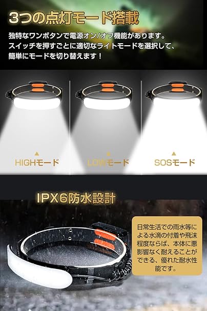 ☆ 3つの点灯モード搭載 ☆ ■独特なワンボタンで電源オン/オフ機能があります。 ■スイッチを押すごとに適切なライトモードを選択して、簡単