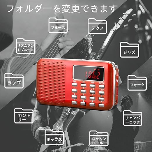 【新しいアップグレードされた機能】1) 1200mAhの充電可能かつ交換可能なバッテリーにアップグレードされ、音量が30%以下の場合に再生時間:6-8時間の連続再生時間を提供します。2) 低バッテリーと充電のヒントが付いているので、突然のシャットダウンや過充電の危険性を心配する必要はありません。3) フォルダー切り替え機能を備えているため、お気に入りの歌手のアルバムを自由に切り替えることができます。
