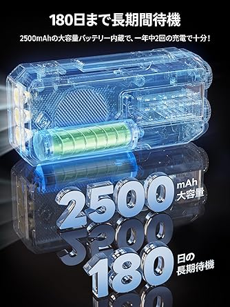 【AM/FMラジオ &高感度受信】台風や地震などの災害時に情報収集するのに役立つ防災ラジオです。FMの電波でAMの放送を聴くことが可能です。30cm伸縮アンテナを搭載しております、抜群な受信感度を実現できます。アンテナが高所に設置されているため、津波などによる影響が抑えられています。また、マンションや山間部でも雑音の影響を受けにくく便利です。AM(520-1710kHz)およびFM(76-108MHz)の受信周波数に対応しています。