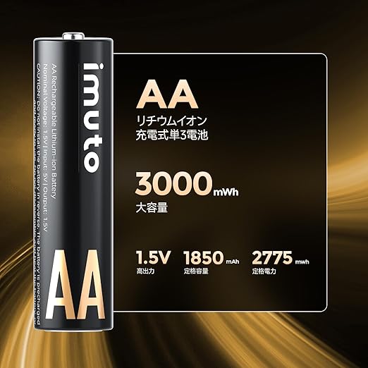 imuto 充電池 リチウム充電式電池 単3形 3000mWh 8本入り くり返し回数1600回 a