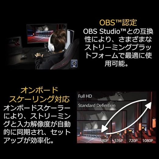 オンボードスケーラーにより、ストリーミング解像度と入力解像度を自動的に同期。
