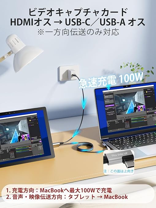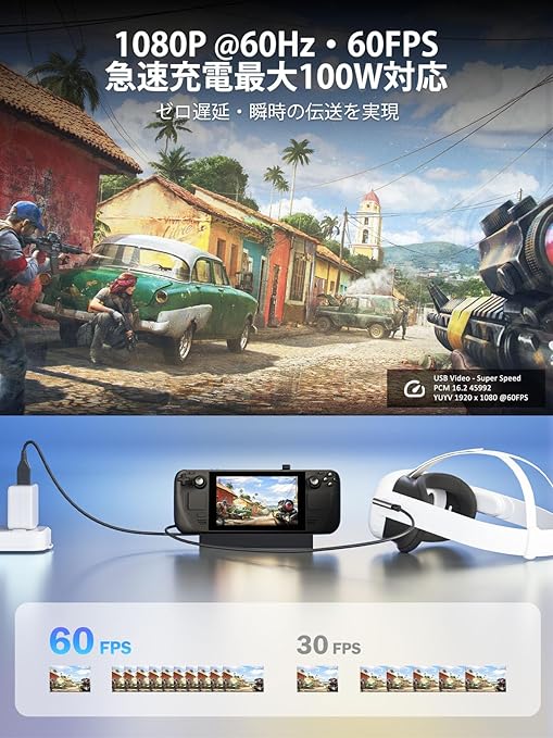 キャプチャーボード switch対応 と PD 100W サポート Meta Quest 2/3/3s、PICO 4 Ultra, HDMI to Type-C/USB-C HDMI 変換 1080P@60FPS ビデオキャプチャー ライブおよび録画ビデオオーディオ ストリーミング、ゲーム用、PC、Switch、PS4/5、Xbox、カメラ、OBS、iPhone、VR用のHDMIキャプチャカード a