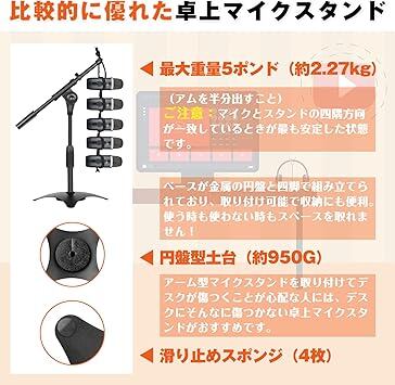EMART マイクスタンド 卓上 角度、高さ調節可能 伸縮 折り畳み式 安定 生放送実況 配信 講演 収録用 クリップ、変換ネジ付き a