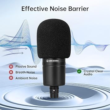 PhantAccy ポップフィルター/ウィンドスクリーン オーディオテクニカ AT-2020 AT-2035 AT-2040 AT-2050 ATR2500 ATR2500X AT-4040 マイク、爆発物とシューという音をフィルタリングするためのフォームマイクカバー(フォームブラック) a