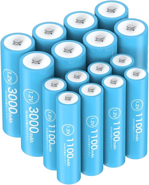 【電池充セット仕様】単3充電池*8本3000mAh+単4充電池*8本1100mAh、;充電を繰り返し使っても劣化が少ないです。Hg/Cd/Pdなどの有害物を使わず、エコタイプの電池です。