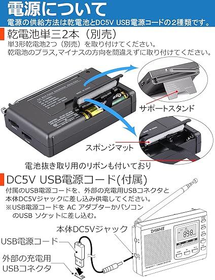 「抜群な受信感度・メモリー可能」雑音の少ない、DSPデジタルチューナー。FM/SW用の最長47センチの回転式7段伸縮ロッドアンテナとAM用の内蔵バーアンテナを装備しており、全バンドにおいて高感度に最適な受信をすることができます。メモリーチャンネル設定方法: 手動設定、ATS(バンド内を自動スキャンしてメモリーチャンネルに自動設定)。AM/FM/短波各20局メモリー。