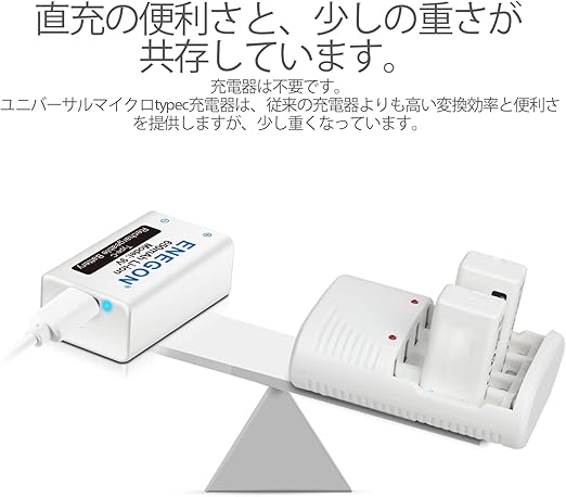 【簡単に充電でき、持ち運びにも便利 】充電器が不要で、伝統的な充電器より便利で高性能になります。 どこでもType-C電源から2つの9v電池を同時に充電でき、旅行・出張やロードトリップなどに最適です。