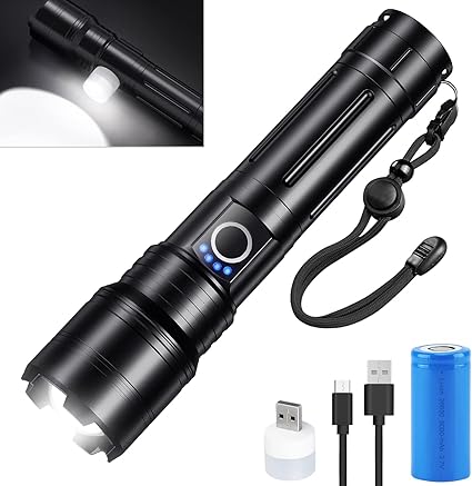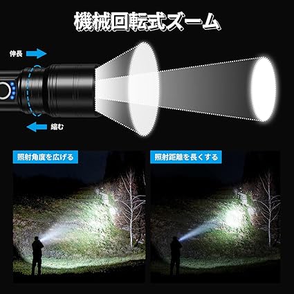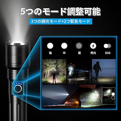 懐中電灯 LED 強力 フラッシュライト【超高輝度 XHP160】ハンディライト 付属USB夜の光 5000mAh大容量電池 野外活動 停電 防災 夜間訓練 作業用 5モード調光 ズーム式 Type-C USB充電式 放電可能 白&赤色灯 IPX6防水 a