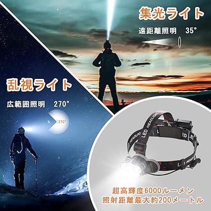 【超高輝度 LED ヘッドランプ・軽量】USB充電式(Type-C)ヘッドライトは超高輝度ledチップを搭載し、明るさは通常の小型ヘッドライト照明の約20倍です。長距離照射が可能で、夜間でも200mまでの対象物に焦点を合わせることができます。寿命は300,000時間、頑丈で耐久性が優れています。急速充電ポート搭載し、僅か3時間で完全充電となり、点灯時間は低輝度で40時間、高輝度で10時間に達ます。電池交換の手間なく充電して何度でも使えるので、経済的です。ヘッドライトの明るさは、夜の釣り、散歩や暗