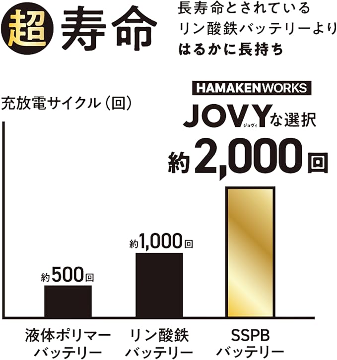 長寿命:2000回の充放電サイクル(容量80%)を実現しまし