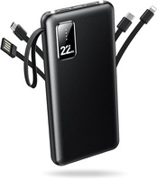 【4本のケーブル内蔵&6台同時充電】 モバイル・バッテリー にUSB-C / Micro USB / Lightning / USB-A の4本のケ