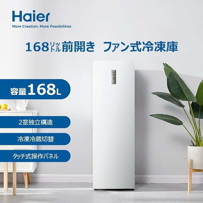 ハイアール(Haier) 168L 前開き自動霜取りファン式冷凍庫 JF-NUF168B(W) 2室独立構造 冷凍と解凍が同時可能 a