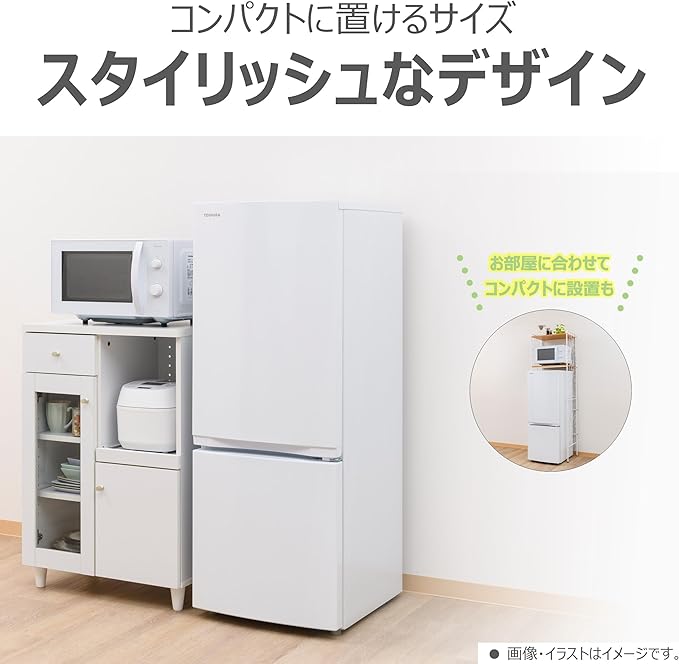 東芝 冷蔵庫 幅47.9㎝ 153L GR-W15BZ1(W) 2ドア 自動霜取り 右開きタイプ ひとり暮らし 省スペース 耐熱天板 2025年モデル セミマットホワイト a