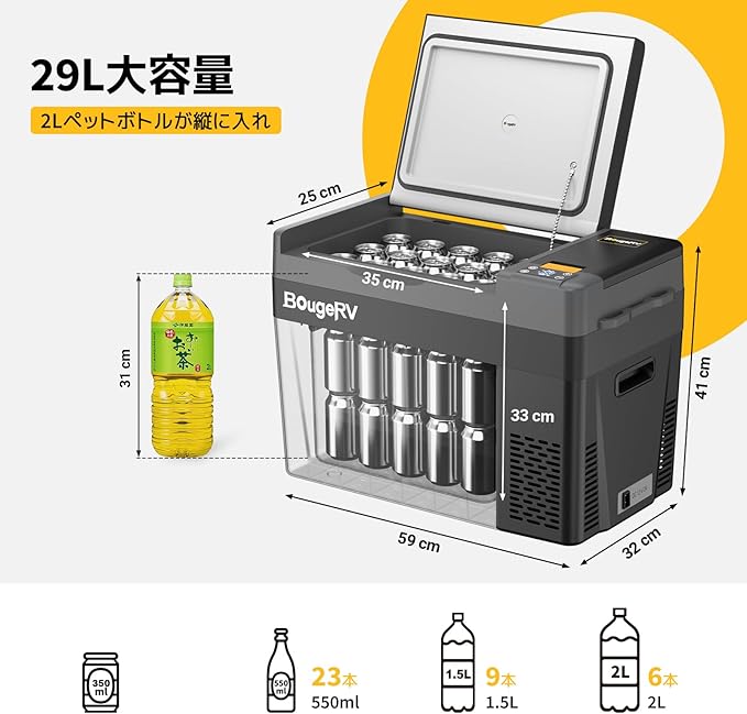 BougeRV 車載冷蔵庫 29L -22℃〜10℃ 急速冷凍 ポータブルれいぞうこ 【バッテリー内蔵可能】車載冷蔵冷凍庫 3WAY電源 DC12V/24V AC100V 大容量 クーラーボックス 電気式 電動 静音 省エネ 2室 小型 車載家庭両用 トラック 冷蔵庫 AC・DCコード 車中泊 キャンプ 釣り アウトドア 買い物 CR Pro 29L (Large 29L ブラック) a